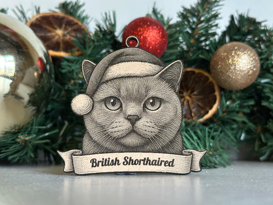 British Shorthaired - Personalisable Christmas Tree Decoration Bauble Ornament Cat Gift