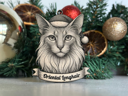 Oriental Longhair - Personalisable Christmas Tree Decoration Bauble Ornament Cat Gift