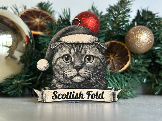 Scottish Fold - Personalisable Christmas Tree Decoration Bauble Ornament Cat Gift