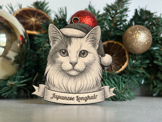 Japanese Longhair - Personalisable Christmas Tree Decoration Bauble Ornament Cat Gift