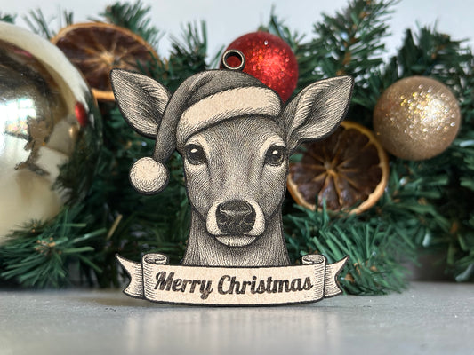 Deer (Doe) - Personalisable Christmas Tree Decoration Bauble Ornament Wildlife Gift