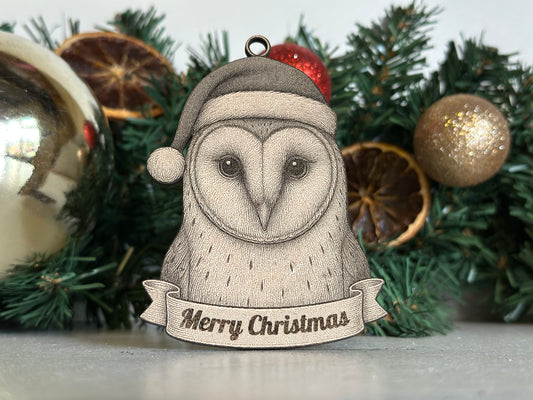 Barn Owl - Personalisable Christmas Tree Decoration Bauble Ornament Wildlife Gift
