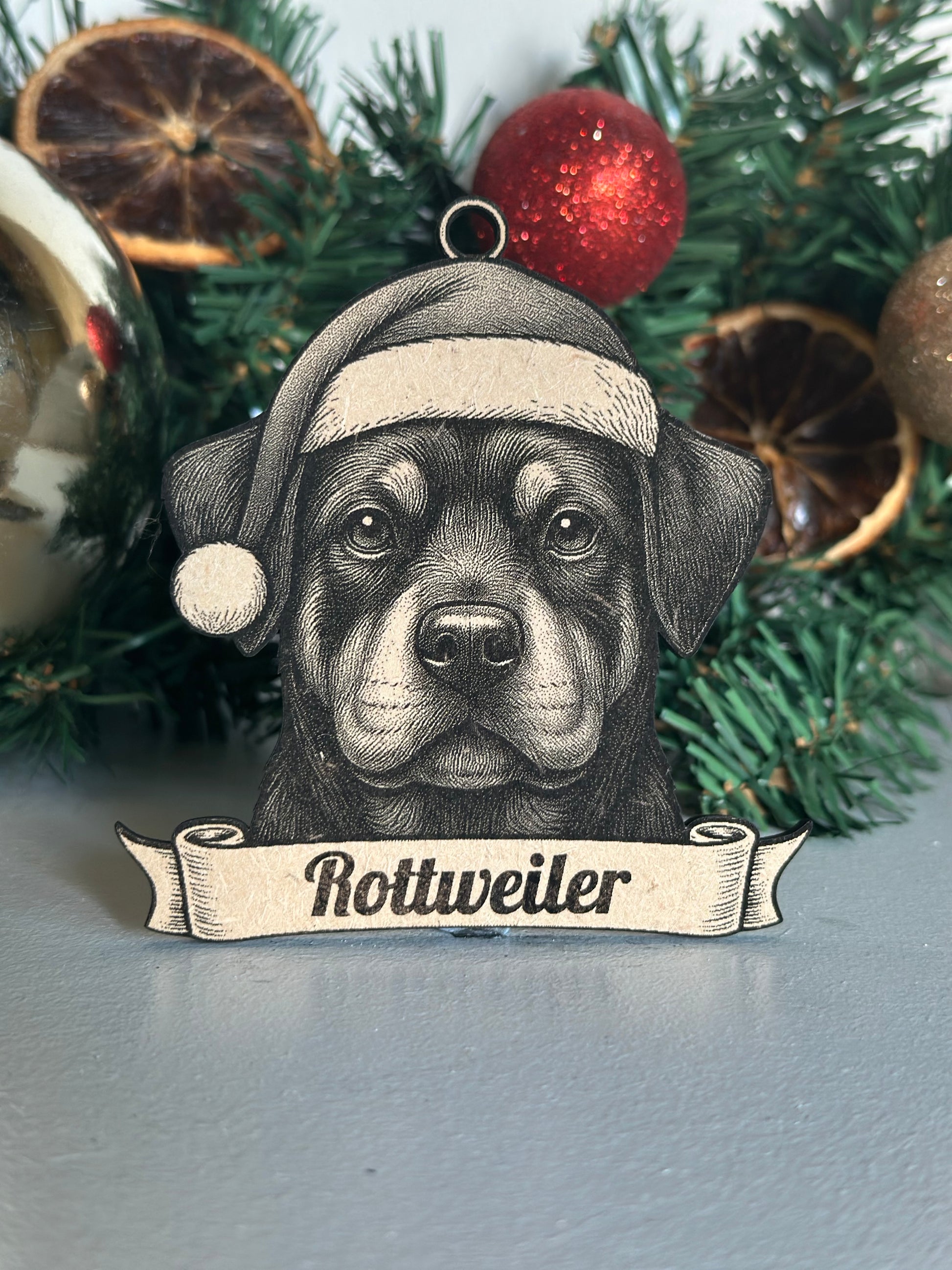 Show your love for this strong and loyal breed with a Rottweiler Christmas bauble that’s full of character. Laser-cut from wood to capture the Rottweiler’s proud stance and kind expression, it can be personalised with your dog’s name to create a special keepsake or thoughtful festive gift for Rottweiler lovers.