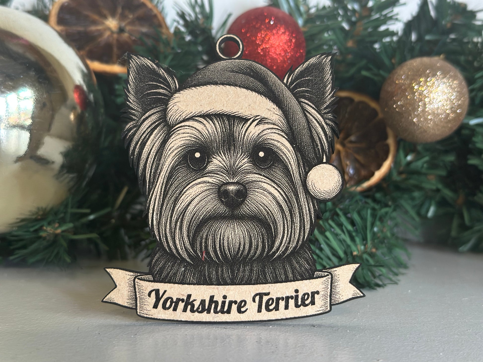Add some festive sparkle with this adorable Yorkshire Terrier Christmas bauble. Laser-cut from wood to capture the breed’s silky fur and lively expression, it can be personalised with your dog’s name for a keepsake that’s as sweet and spirited as your Yorkie. A thoughtful gift or charming addition to your Christmas tree.
